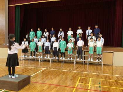 文化祭日課1日目に1年生は音楽科の教師の指導のもと、合唱練習を行いました。それに加えて、校内合唱17日(金)と文化祭本番の動きの確認も行いました。刻々と近づく文化祭当日に不安を抱きながらも、その不安を消し去ろうと、毎日休み時間に合唱練習をしています。日々の努力が身を結び、今日の文化祭準備の時間に音楽科の教師から「声が朝の授業よりしっかり出ているね」「呼吸のときから歌う口をしているのがいいね」と褒められ、嬉しそうな生徒の姿が多く見られました。