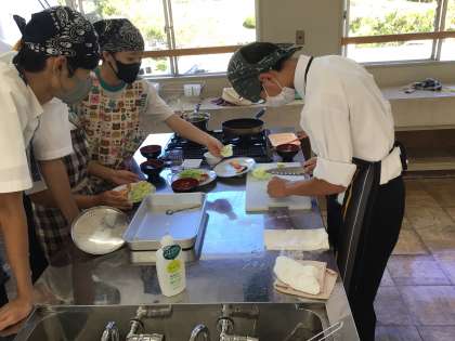本日のメニューは鮭のムニエルと豆腐とねぎのすまし汁です。