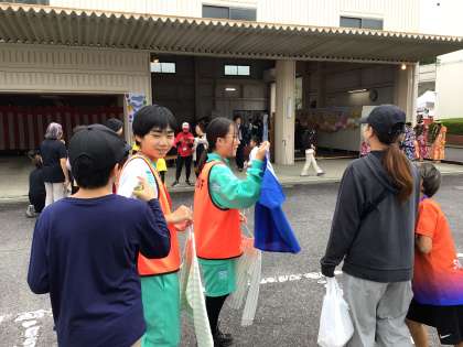 特に、ボランティアの「しもサポブース」では、建物内のブース前だけでなく、外に出て、リサイクルの子ども服の紹介をしている生徒がいました。「しもサポブース」を運営してた方々から「よく動いてくれて助かる」「来年もお願いしたい」とおっしゃっていただけました。