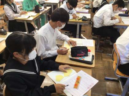 2年生の数学科では、多角形の内角の和について学習しました。「なぜそうなるのか?」という疑問に対して、補助教具を使って自分たちで考える姿が印象的でした。振り返りの記述からは、「分かった!」という喜びが伝わってきました。