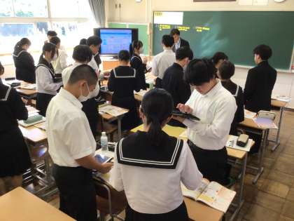 本日、豊田市教育委員会の皆様による学校訪問が行われました。各学年の授業の様子を見ていただき、生徒たちの学びの姿をしっかりとご覧いただきました。