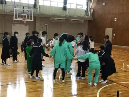 本日、小中連携の取組として、下中生と大沼小学校の児童が、生徒会主催の交流会を行いました。生徒会役員の盛り上げにより、和やかな雰囲気の中で会がスタートしました。