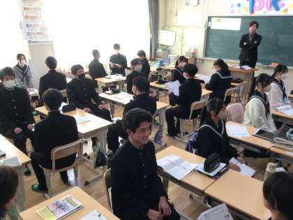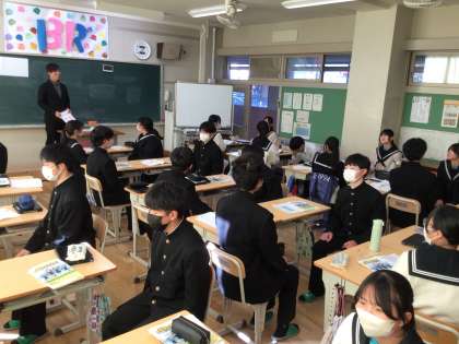 その後はペアに分かれ、実際の面接を想定した練習を進めました。志望動機や自分の長所・短所、これまでがんばってきたことなどについて、一人一人が自分の考えを堂々と伝える姿が印象的でした。面接で問われる内容は、単なる暗記ではなく、自分自身を見つめ直し、言葉にする過程が重要です。普段から「なぜその進路を選ぶのか」「自分の強みは何か」を考え、言葉にする習慣を身に付けることで、それが自然と「あたりまえ」になっていきます。社会に出てからも、自分の考えをしっかりと伝える力は必ず役立ちます。今日の練習をきっかけに、日常生活の中でも意識して取り組んでほしいと思います。