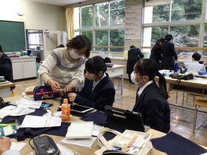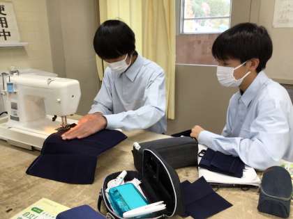 今日の1年生の家庭科の授業は裁縫を行いました。生徒はミシンや刺し子針など裁縫道具を使い、各々作業を進めていました。「これ見て、可愛くできた」「縫い目がぐにゃぐにゃになっちゃった」などの生徒たちの声が聞こえました。ミシンで上手に縫う方法についてミシンを使いながらアドバイスし合っている生徒の姿が印象的でした。
