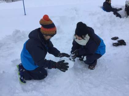 雪上レク「雪だるま」づくり
