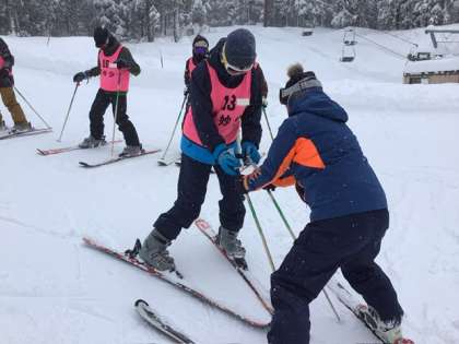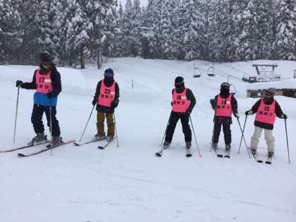インストラクターさんが手厚く指導してくださいます。 無事にスキー板が履けました!