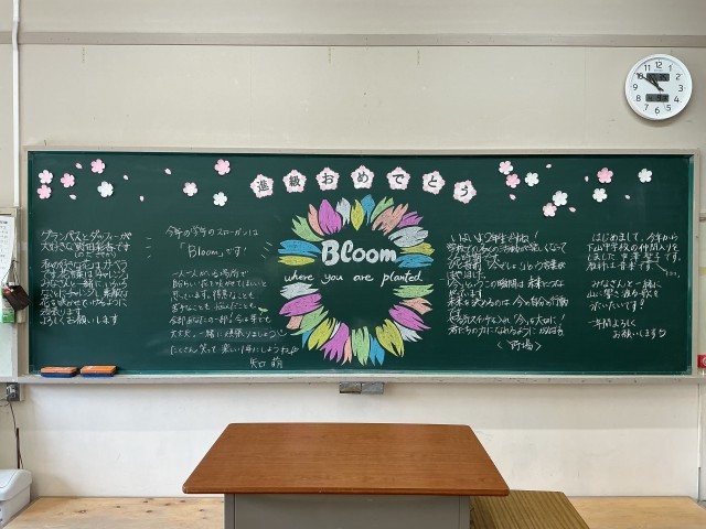 4/9 令和8年度下山中学校スタート~入学式・始業式~ 公開日 2026/04/09 更新日 2026/04/09 学校行事 本日、入学式・始業式が行われ、令和8年度下山中学校がスタートしました。 31名の新たな仲間を迎え、今年度は全校89名の下中生が、学校づくりの合言葉「やってみまい」のもと、地域から愛される学校を目指し活動を進めます。 保護者、地域の皆さん、応援よろしくお願いいたします。※写真は、本日各教室に書かれた担任から生徒への黒板メッセージです。 +1