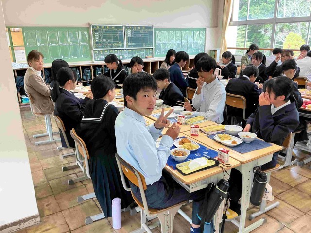 午前中のテストを終えての給食は、ほっと一息つくことができたのではないでしょうか。