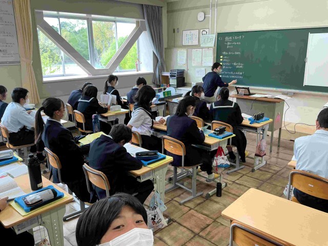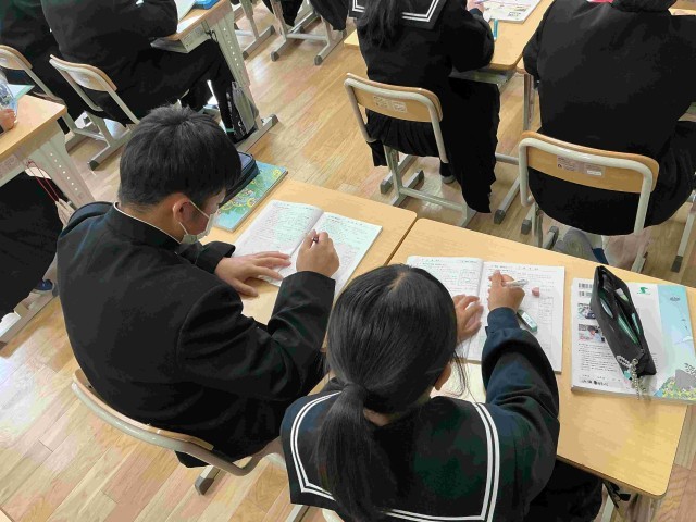 4枚目…2年生道徳科。「個性を生かす」を主題として授業を進めていました。どうしても写真に写りたいという個性が自然と体に表れてしまった生徒がいます。