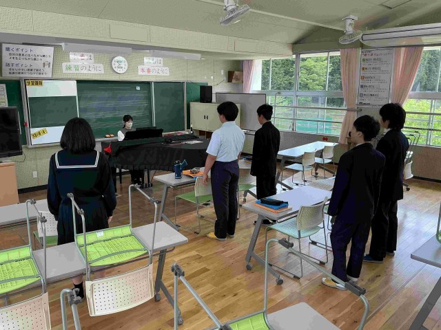 3枚目…ささひま音楽科。校歌でウォーミングアップしている様子です。数名ですが、校舎1階までしっかりと聞こえてきました。