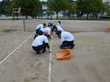 除草作業のあとは、ブラシやローラーをかけて、コートをきれいに整備してくださいま...