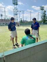 テニスコートの除草作業の様子です。炎天下で暑い中、がんばってくださいました。