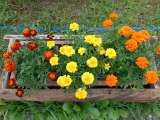 たっぷりの雨とたっぷりの日光のおかげで、ロータリーのマリーゴールドが、さらに大...