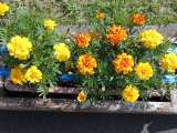 7月13日 ロータリーのマリーゴールド等が鮮やかに咲いています。