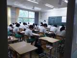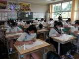 本日は前期期末テストの2日目。生徒たちは真剣にテストに取り組んでいました。(上は...