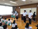 本日一時間目に夏季休業後全校集会を実施しました。一枚目は生徒会役員の認証の様子で...
