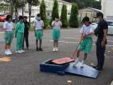 2時間目の避難訓練の様子です。 消火栓の開け方や消火ホースでの放水、ホースの結合...