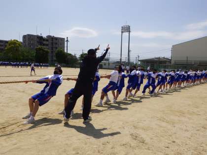 5月10日(月)学校の様子 公開日 2021/05/14 更新日 2021/05/14 お知らせ 給食後の5限目は、運動場で体育祭練習を行いました。給食の時間が終わった昼放課の時間から学年全体が練習に向けて燃え上がり、必要な器具を迅速に準備していました。リレーのバトンパスを入念にチェックしたり、綱引き種目の綱を引く態勢やタイミングを工夫して練習しています。最後には、次に使う学年のために率先して片づけをしている生徒たちがたくさんいました。