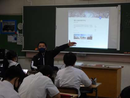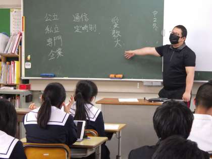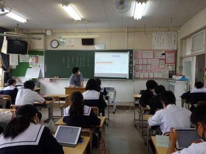 5月13日(木)の総合の授業では「未来との繋け橋〜自分の将来に向けて」というテーマで、<高校調べ>をしました。4月17日(土)の授業参観「なーるほどザ進路」で、中学校卒業後は、就職や進学など様々な進路があることや、この学年から改定される新たな公立高校入試の仕組みについて学びました。これからは膨大な情報を自分で調べ、自己選択していく時代になっていきます。進路選択の第一歩は、まずは”知る”ことです。そこでタブレットを用いて各々が自分の興味のある高校を調べました。