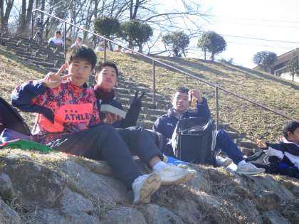 自然教室 第2日目-4 @豊田市総合野外センター 公開日 2022/01/31 更新日 2022/01/31 学校行事 六所山登山道では、元気に歌いながら登る生徒のおかげで、明るい雰囲気でした。「もう足が動かない」という子の手を取って、引っ張ってあげる生徒もいました。 頑張った後のお弁当は、本当に美味しそうに食べています。