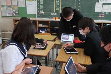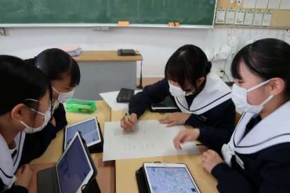 修学旅行に向けて、クラス別活動や班活動の計画が立てられています。スローガンに「夢叶える第一歩〜口から+を東京へ〜」を掲げ、楽しくも学びある旅にするために、団結していきたいと思います。