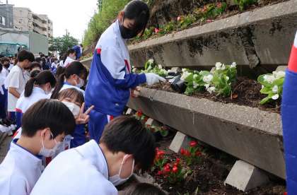5/25(木) 2年生フラワーロードボランティア 公開日 2023/05/25 更新日 2023/05/25 お知らせ 学校全体の活動として南門の外側にあるフラワーロードの花植え作業を行いました。2年生も多くの生徒がボランティアとして参加しました。みんなの協力のおかげで綺麗なフラワーロードが完成しました。花が咲くシーズンになったら、より綺麗に咲いてくれるといいですね。