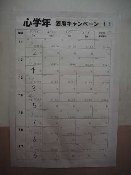 5/31(水)1年生 着席キャンペーン
