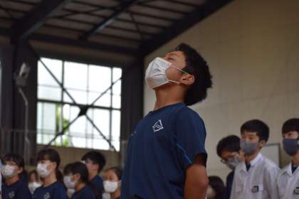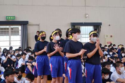 部活動壮行会で、2年生は夏の大会を控えた3年生に向けてエールを送りました。とても迫力のある声量で応援している姿を見て感動しました。夏の大会で3年生のがんばっている姿を目に焼きつけてほしいです。