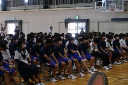 ハートフル集会でスクールカウンセラーの水野先生に記憶についての講和をしていただきました。生徒たちは自分の勉強方法の改善につながるのではないかと真剣に聞いていました。少しでも生徒の勉強意欲につながれば良いと思います。また身近な人や学校の先生に悩みなどを相談できないときは、ためこまずに、水野先生への相談も考えてみてください。