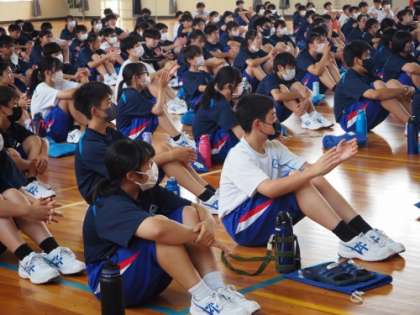 7/10(月)5限に学年集会を行いました。各学級の級長が考案したレクリエーションを心学年全員で行いました。学年が一つとなり、楽しい時間を過ごせました。