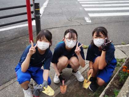 9/14(木)の業後にフラワーロードに花を植えるボランティア活動があり、全校で100名以上のボランティアが集まりました。1年生は、56名の参加があり、飛び入り参加の生徒もいました。たくさんのボランティア参加を嬉しく思います。
