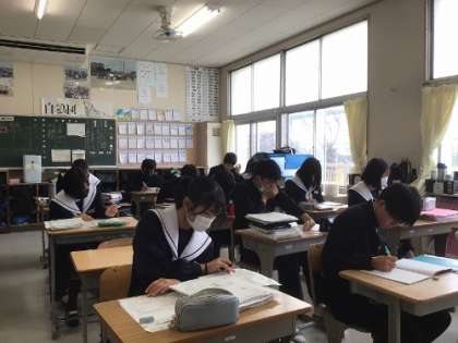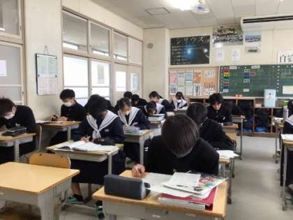 11/20(月) 3年生 後期中間テスト 公開日 2023/11/20 更新日 2023/11/20 学校生活の様子 11/16(木)〜11/20(月)まで後期中間テストが行われました。どの生徒も最後まで真剣に取り組むことができました。努力してきたことが十分に発揮できていたらと思います。今回のテストをきちんと振り返り、受験につなげてほしいです。