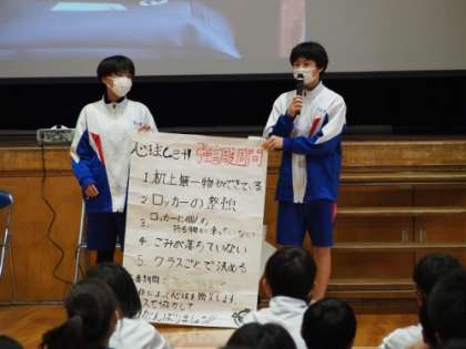 また、明日から級長会企画の「心玉GET!強調週間」が始まります。机の上は何もない状態になっているか、整理整頓できているかなど普段の生活をチェックする週間になります。