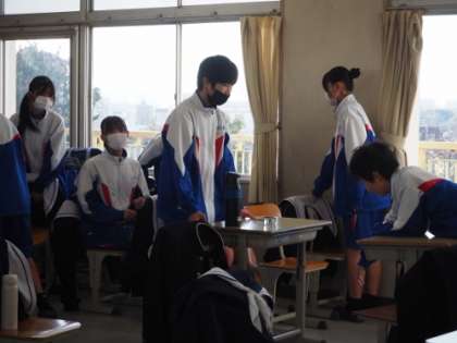 朝の読書の時間に絵本の読み聞かせがありました。8:10から始まる読み聞かせに間に合うよう机を下げるとき、自分の机だけではなく、クラスメイトの分も下げている姿が見られました。周りを見て行動できている生徒が多く、素敵に思いました。