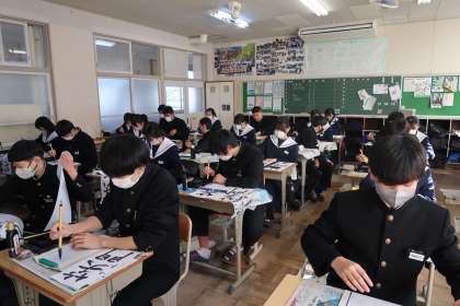 新年あけましておめでとうございます。1月9日に書初め大会が行われました。静かな雰囲気の中、黙々と文字(笑門福来)を書いていました。休み明け最初投稿日でしたが、とても落ち着いた雰囲気で、良かったです。新年素晴らしいスタートが切れたと思います。