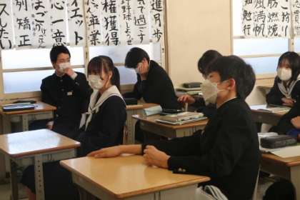 1/26(金) 3年生 私立学校・専修学校一般入試を終えて 公開日 2024/01/26 更新日 2024/01/26 学校生活の様子 今週は私立高校・専修学校の一般入試が行われていたため、1/26(金)は久々に全員が揃う機会でした。入試を終えて少しほっとした表情を見せている生徒もいましたが、今日から結果発表もあるということで、まだまだ緊張した面持ちの生徒もいました。一層寒くなってきて雪の降る日もあったので、体調管理には十分に気を付けてこれからも過ごしてほしいです。