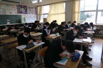 来週はいよいよ2年生最後の定期テストになります。良い結果を出せるように必死に勉強している姿が見られます。先日学力診断テストがあり、その熱がまだ冷めていないように見えます。来年度にもつながる重要なテストになるので、頑張ってほしいです。
