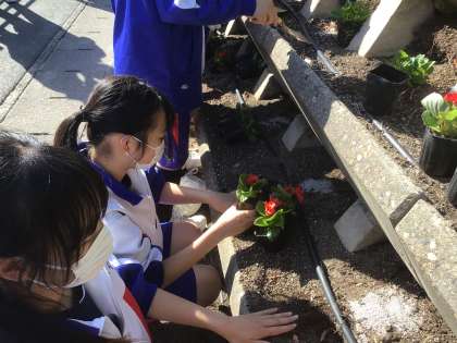 2年生 5/9(木) フラワーロードに花の苗を植え付けをしました