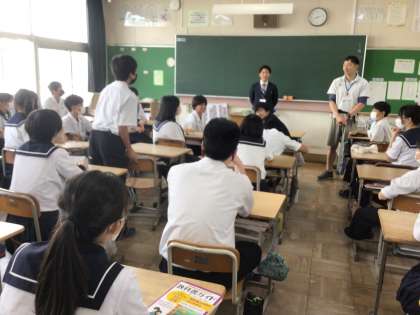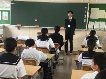 本日より、教育実習が始まりました。2年生には、2年3組と2年7組に教育実習生が入ります。3組に入る教育実習生は5月31日(金)までの2週間、社会科を担当し、7組に入る教育実習生は6月14日(金)までの4週間、保健体育科を担当します。