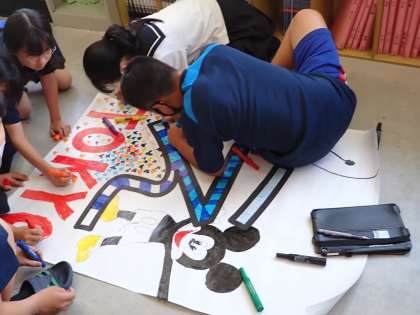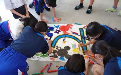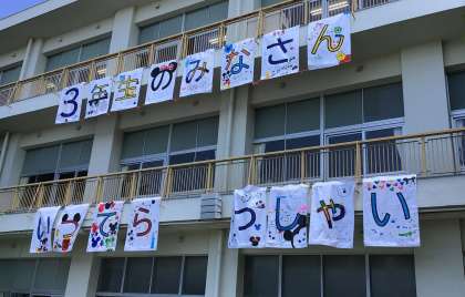 一文字一文字に先輩たちの無事を祈る気持ちを込めて、色鮮やかなメッセージを書き上げ、見送りました。