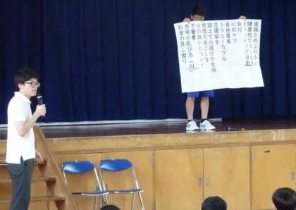3時間目の学年集会では、夏休み中の学習や生活、体験入学についての話をしました。様々な面で自分を律し、メリハリのある有意義な夏休みにしていきましょう。