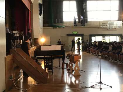 一年生はやや距離のある鑑賞となりましたが、真剣な眼差しで舞台を見つめる生徒達の姿が印象的でした。