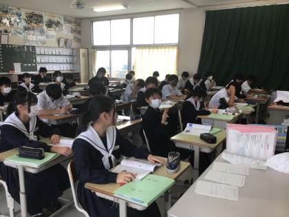 1年生11/12(火)後期中間テストに向けて 公開日 2024/11/15 更新日 2024/11/15 学校生活の様子 1年生の授業の様子です。 体育祭も終わり、最近は後期中間テストに向けて集中して取り組む姿が見られます。 それに伴い、ドリルコンテストも行われています。 クラスのリーダー中心に呼びかけを行い、満点を目指す姿勢が見られました。