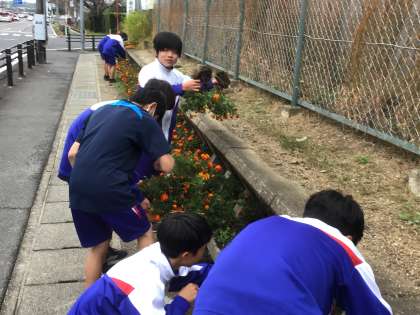 2年生 11/28(木) フラワーロードの冬バージョンの準備を始めました 公開日 2024/11/28 更新日 2024/11/28 学校生活の様子 気温も20度を切る日が続き、いよいよ冬の気配が感じられる季節となりました。そこで、フラワーロードの花壇も冬バージョンの花を植える準備が始まりました。2年生の外庭清掃担当も麦の会のお手伝いとして秋の花を抜いて冬の花を植える準備をしました。