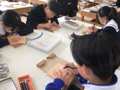1年生 11/28(木)授業の様子 公開日 2024/11/28 更新日 2024/11/28 学校生活の様子 美術の時間では、彫刻を行なっています。 それぞれ花や動物の絵を描き、真剣に掘っている姿が見られました。 満足の行く作品ができるといいですね。