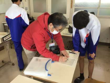 今美術科の授業では、「ドライポイント」を制作しています。まず下書きを作り、その下書きした絵を塩ビ板に油性ペンで転写し、塩ビ板の裏側からニードルや紙やすりで描写していきます。どんな作品ができあがるのか楽しみです。