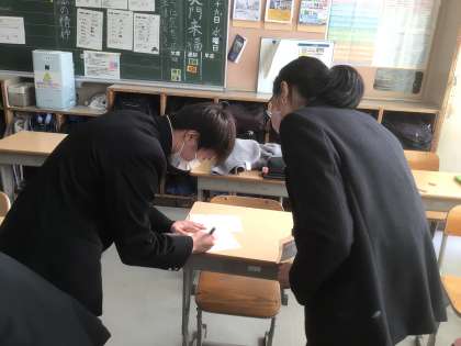 生徒たちは、個別懇談会で担任から伝えられた現状を踏まえ、各自で計画を立てて受験勉強を行っています。そんな中、今週の英語の時間では、フィリピン出身のALTの先生からクリスマスについて授業を受けました。フィリピンでは、9月から準備が始まるほどクリスマスがとても大きなイベントであることや、教会に9日間連続で通わなければならないことなどを教わり、生徒たちは、日本のクリスマスとの違いに驚いていました。異文化を知るよい機会になりました。