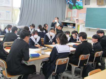 3日(月)に、今年度の最後となる委員会がありました。主に後期の反省と来年度に向けた話し合いをしていました。3年生はあと少しで卒業しますが、来年度のために積極的に意見を出す姿も見られました。後期だけでなく今年度全体で、学校のために考え、行動に移す生徒が多く、成長を感じました。