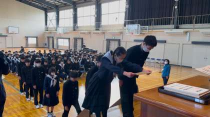 また、今週から卒業式の練習が始まりました。式全体の流れを確認し、起立・礼・着席の仕方や、卒業証書の受け取り方などを練習しています。給食後には、各クラスで合唱練習もスタートしています。本格的な練習は来週から始まっていきます。