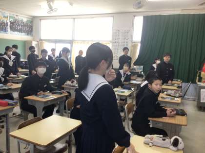 1年生 3/18(水)今年度最後の授業の様子 公開日 2025/03/18 更新日 2025/03/18 学校生活の様子 年度末になり、1年生で行う授業も少しずつ、終わり始めています。 英語の授業では、英単語を通してゲームを行ったり、国語の授業では百人一首を行うなど生徒たちは楽しんで活動する姿が見られました。 もう少しで授業は終わりますが、生徒たちが学習を続ける雰囲気を作っていこうと思います。